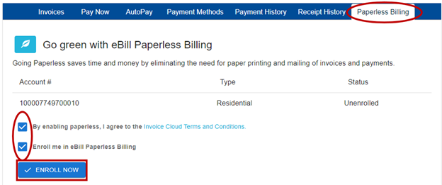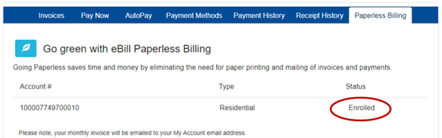 3) Change your billing preference from a paper bill to an electronic bill by selecting 'Enroll me in eBill Paperless Billing'.